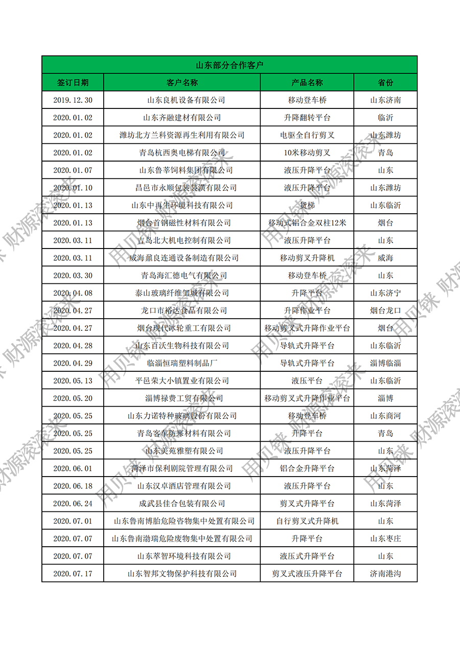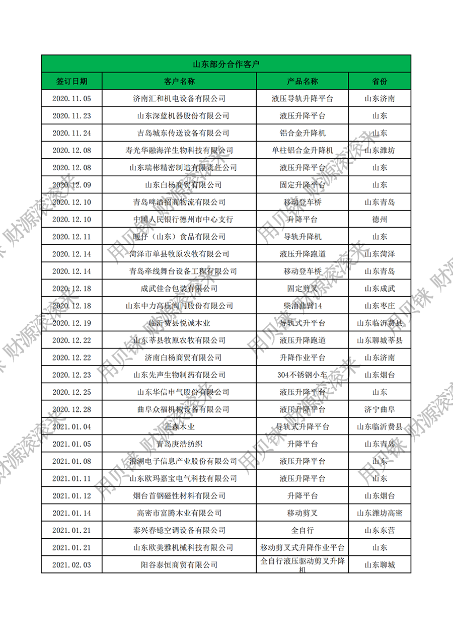 • 山東部分客戶1