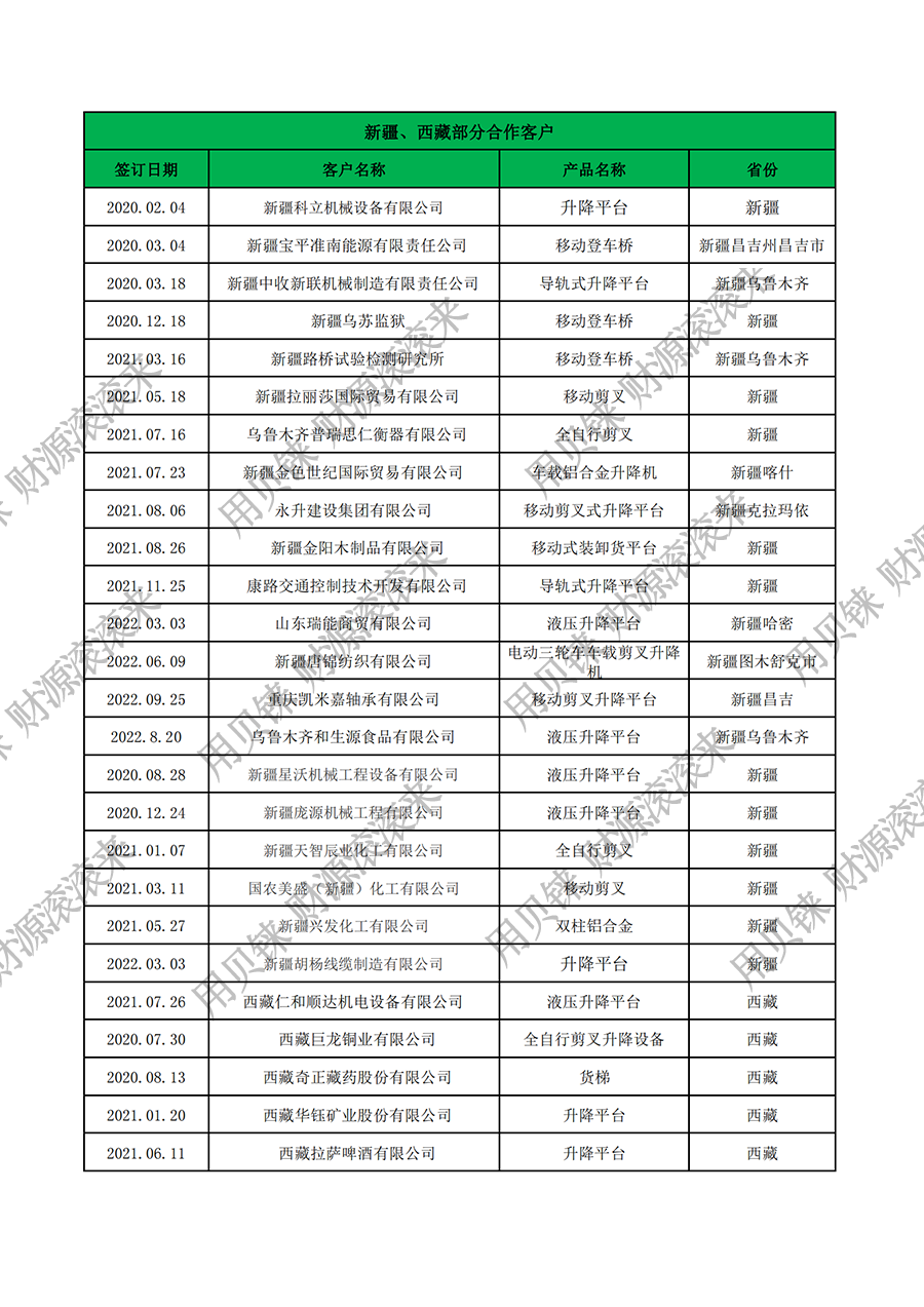 • 新疆西藏部分客戶