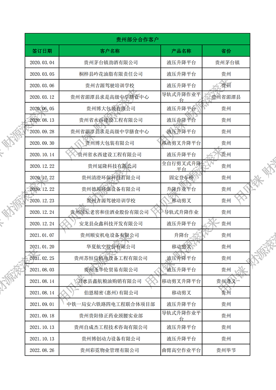 • 貴州部分客戶