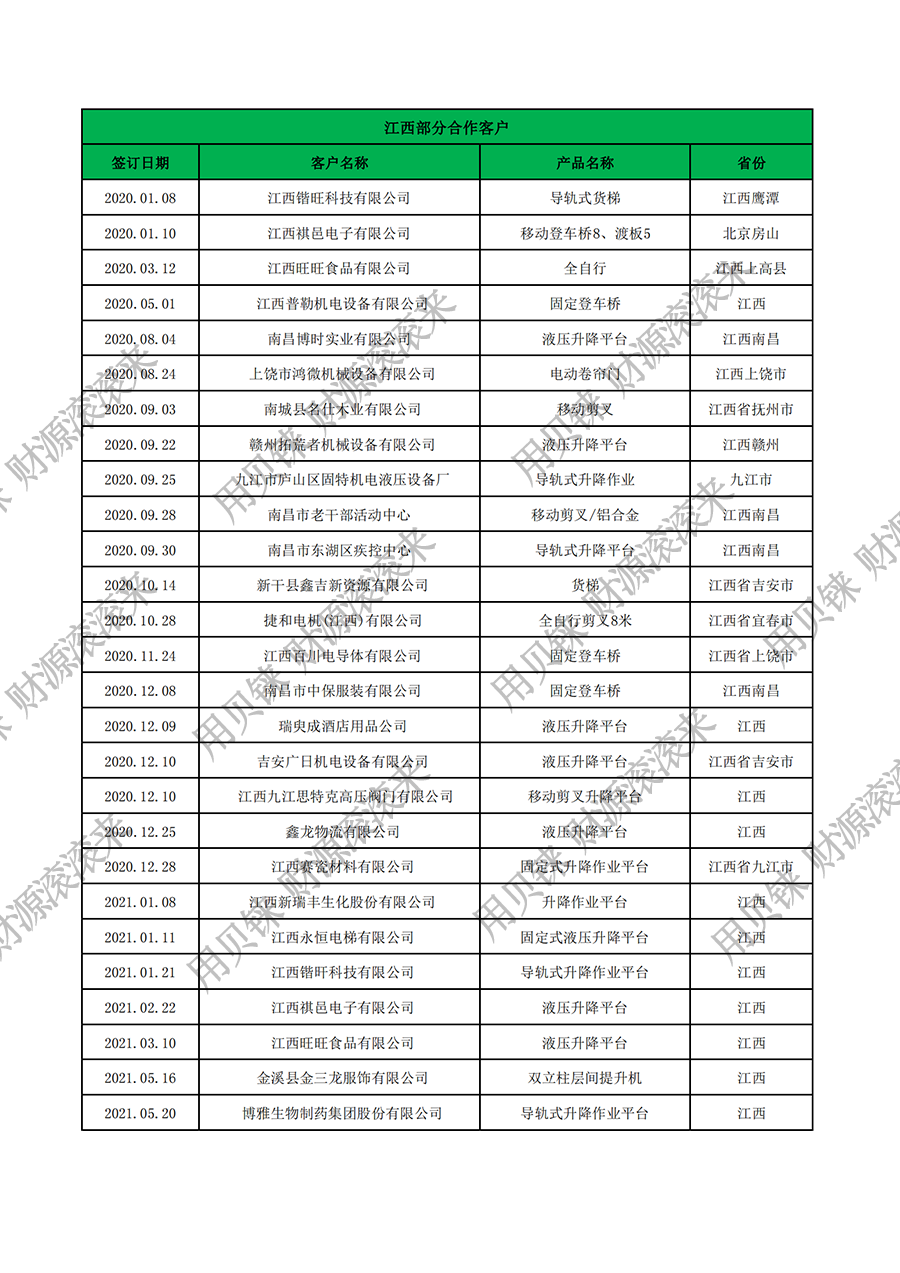 • 江西部分客戶
